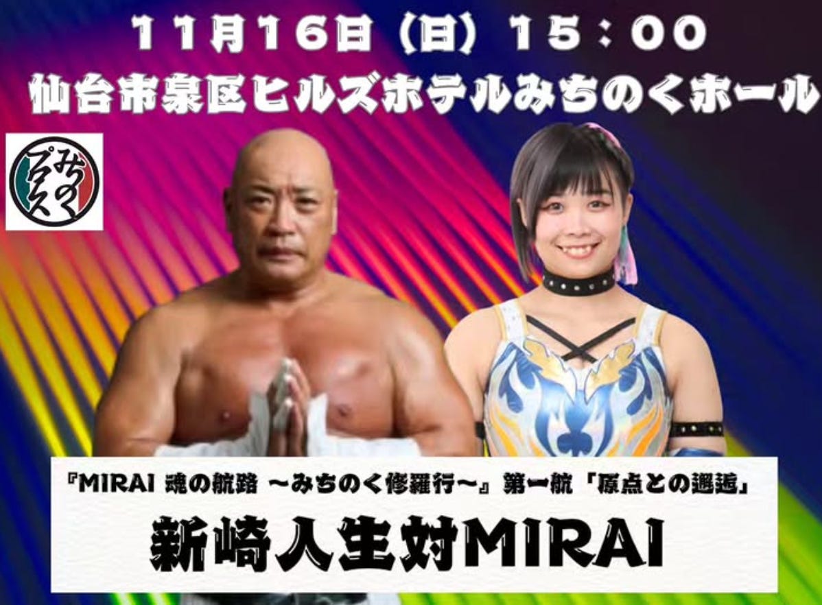 At just 25 years old, MIRAI has already built an impressive résumé in Japanese wrestling, known for her powerful style rooted in years of judo. After departing Marigold earlier this year, she has returned to Iwate and joined Michinoku Pro Wrestling, marking a new chapter in her career.